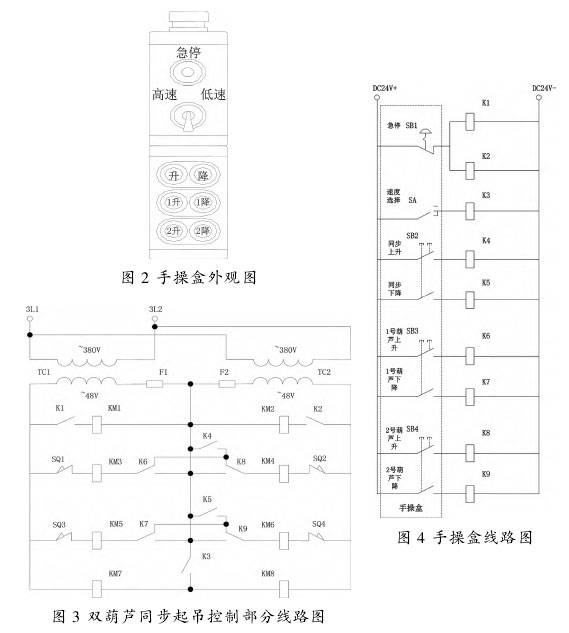 3 電動(dòng)葫蘆的改造手操盒同步控制
